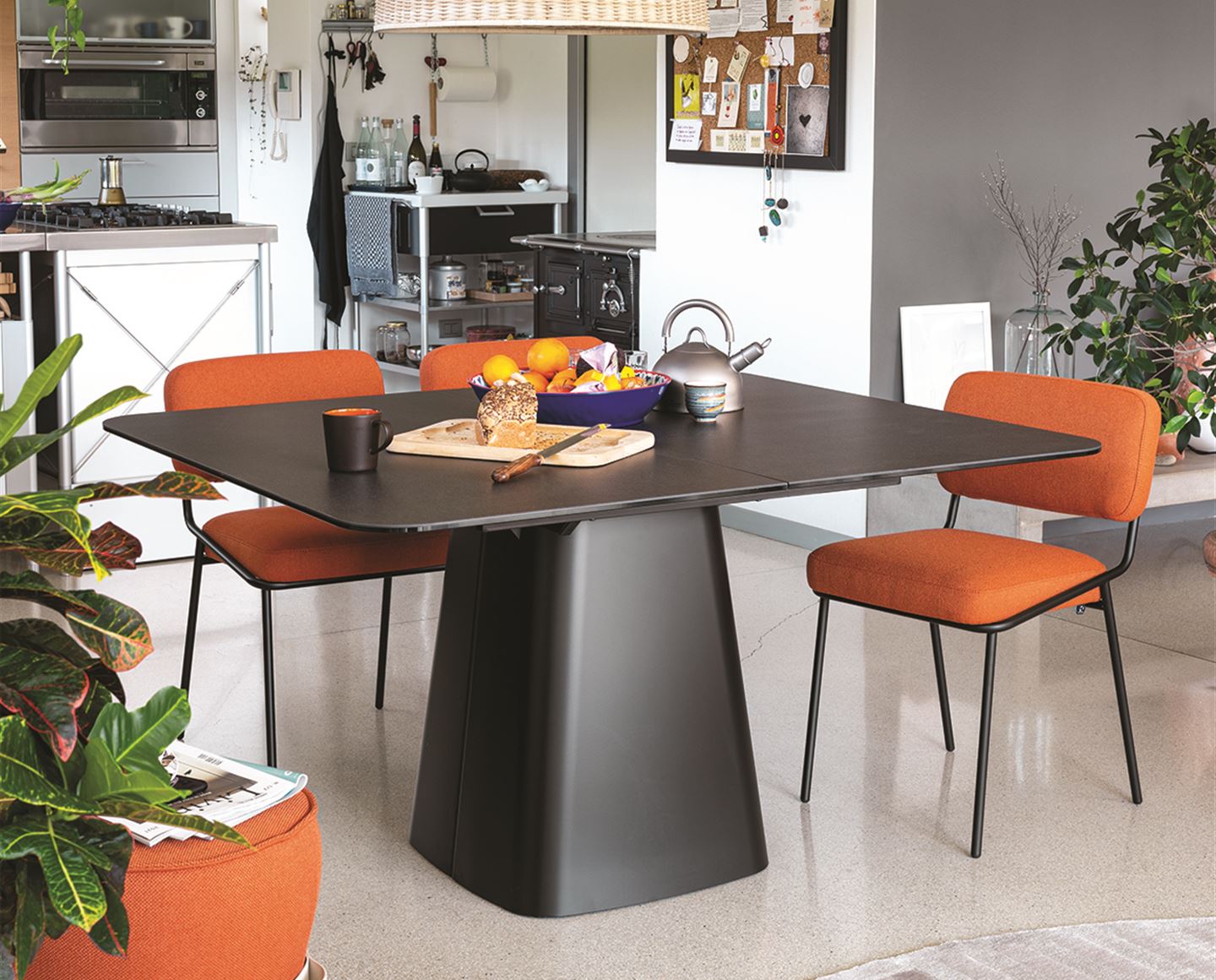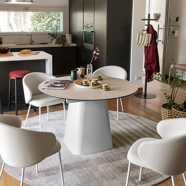 Con. Hey Gio! karakteres olasz dizájn asztal kétféle konstrukcióban. A fémből készült lábak és a kiterjeszthető asztallap egyszerre ruházza fel eleganciával és stabilitással. Többféle színárnyalatban és mintázatban elérhető, amelyhez számos további stílusban hozzáillő termék is választható.