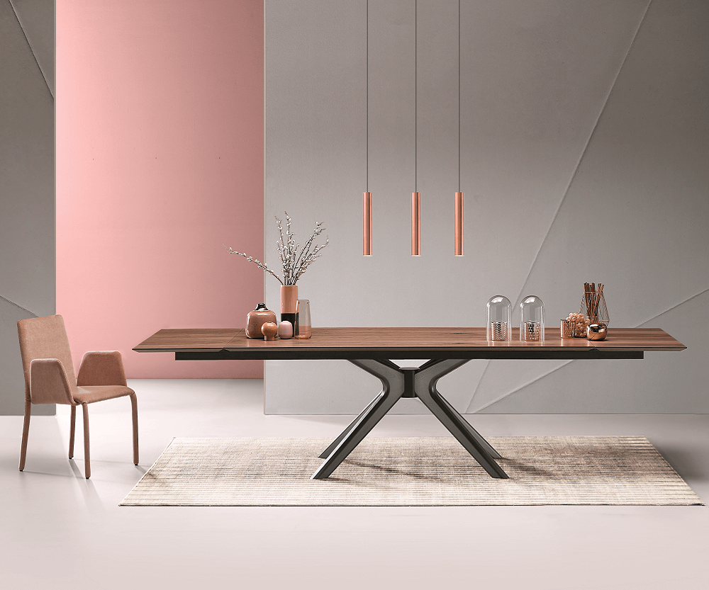 Nat. Root olasz dizájn asztal. A kőrisfából készült tartólábszerkezet a növények szerteágazó gyökérzetét idézi, egyidőben fejezve ki a természet megtartóerejét és mozgalmasságát. Az furnérozott asztallap nagyszerű kontrasztot képez a talapzattal, mely kiterjeszthető változatban is rendelhető.