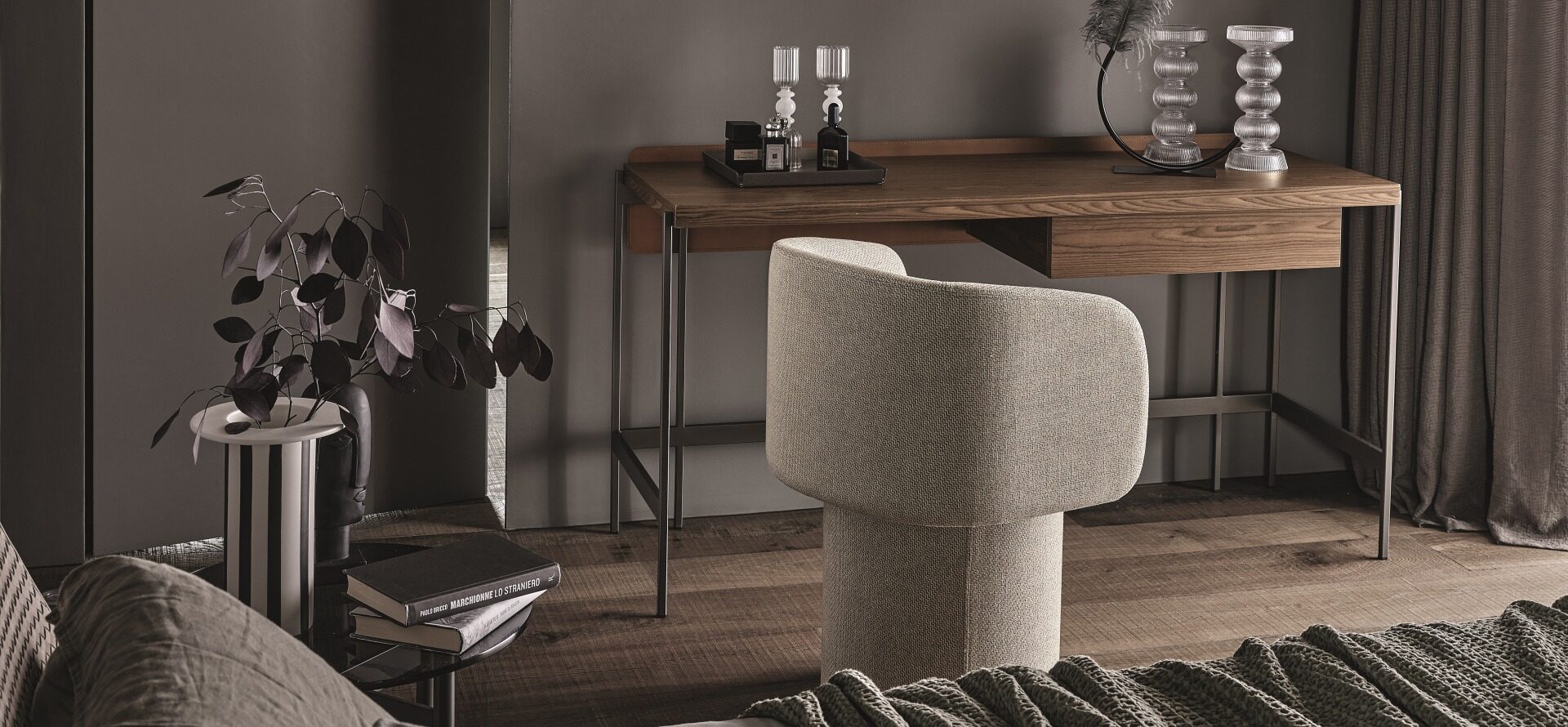 Dit. Unit Desk dizájn íróasztal. Funkcionális és esztétikus bútordarab dolgozóhelyiségekbe, hálószobákba. Finom részletekkel kidolgozott struktúrája és kecses lábai mellett praktikus fiókos tárolóhellyel rendelkezik.