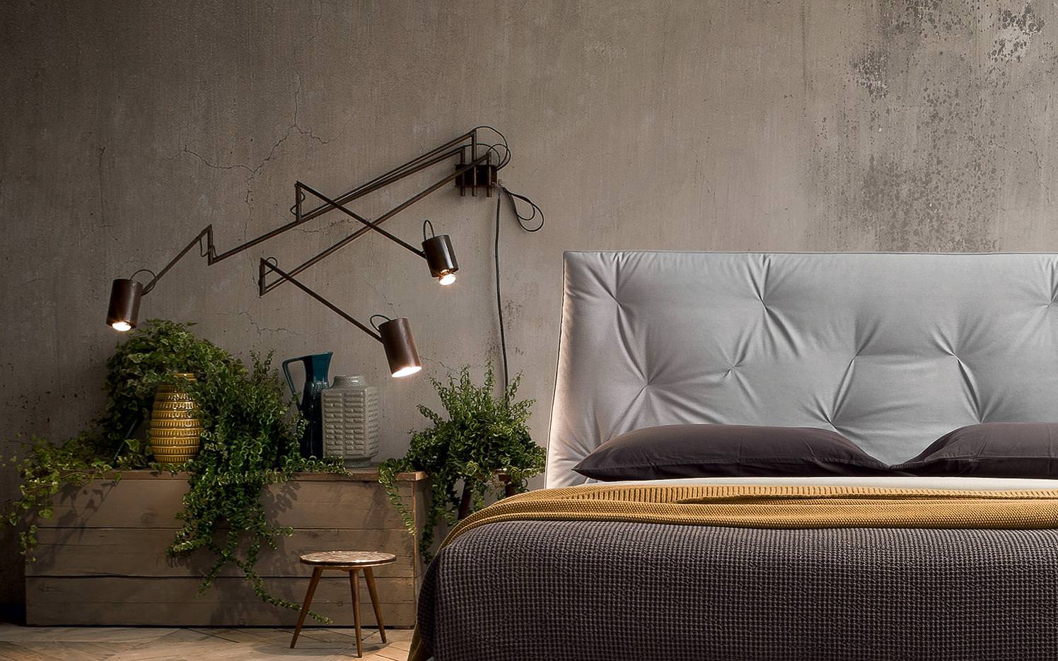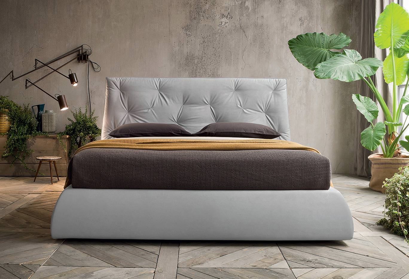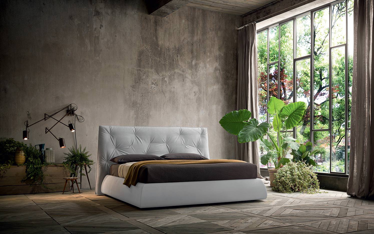 Felis Lenny modern franciaágy. Fejtámlája és vázszerkezete lefele jellegzetes enyhe szögben szélesedve horgonyozza le magát a padlóra. Stílusos olasz dizájn ágy szteppelt mintájú fejtámlával kényelemes pihenést garantál minden használójának.