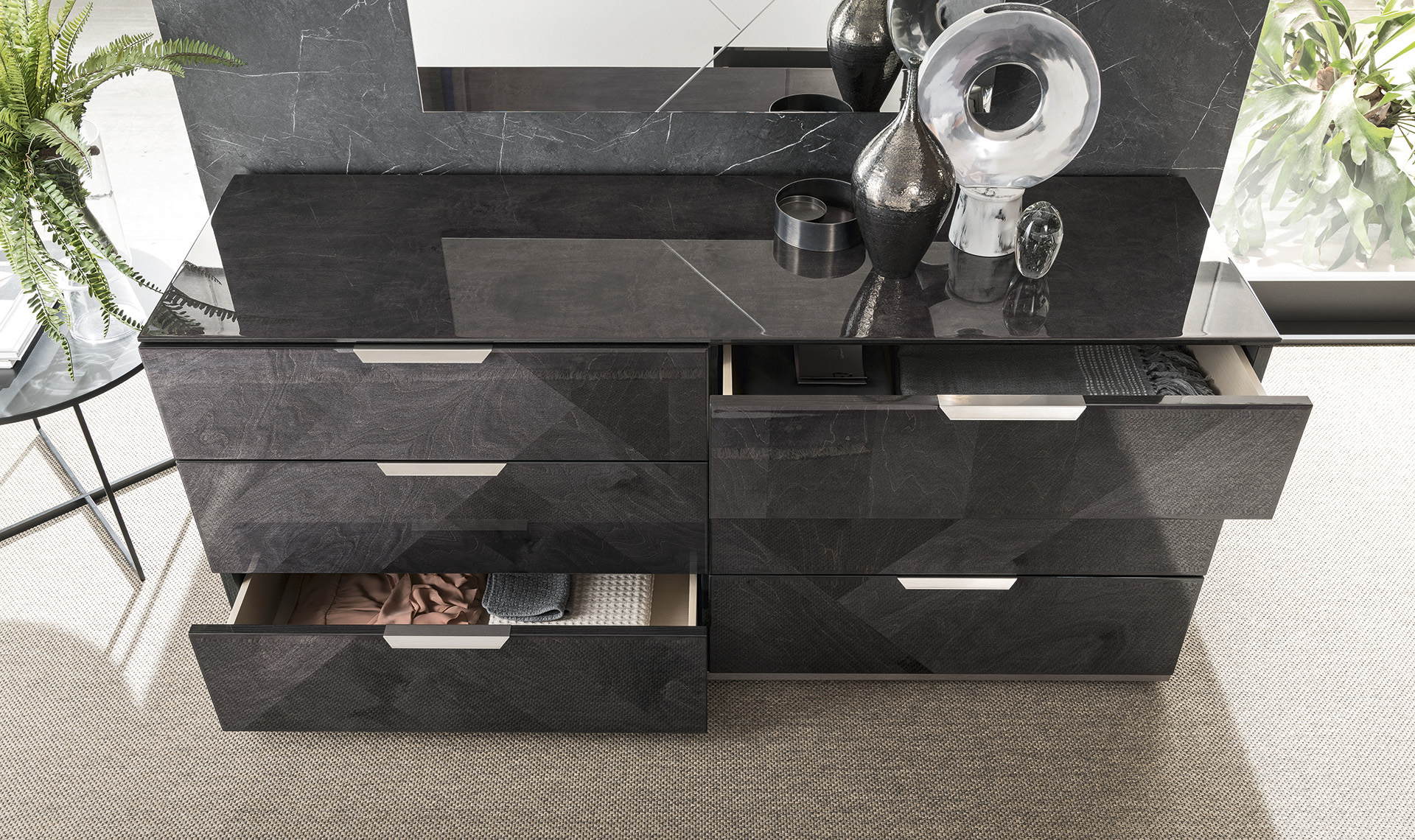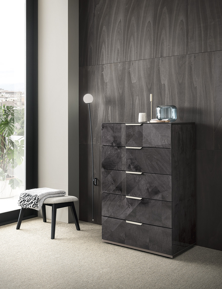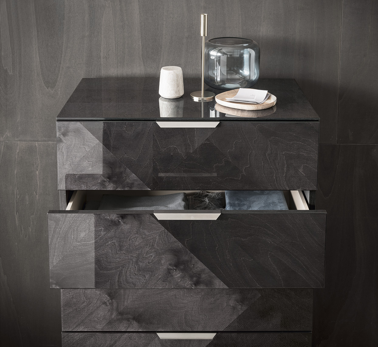 AL. RIV olasz dizájn komód öt ill. hat fiókkal, kétféle változatban. A RIV hálószoba kollekció része, melynek kifinomult és praktikus kínálatával könnyedén és igényesen felszerelhetők a hálóhelyiségek. A természetes megjelenésű nyírfa felületekkel készült komód további esztétikus és nagy méretű tárolóhelyekkel bővítheti otthonát.