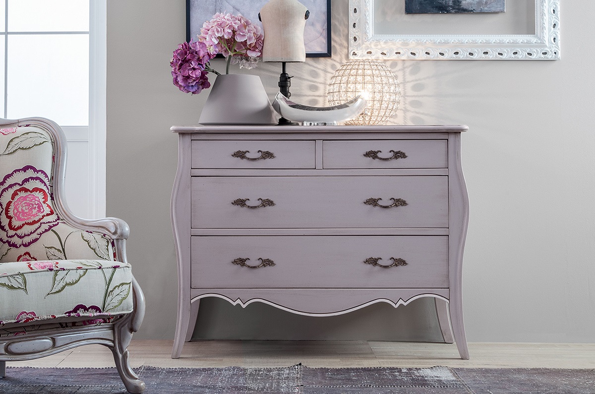 Ton. Ginevra olasz dizájn hálószoba komód négy fiókkal. Klasszikus stílusú megjelenése formabontó, finom ívű vonalakkal keveredik. Lenyűgöző antik hangulatával és nagy méretű praktikus tárolóhelyeivel elegáns berendezésű hálószobák kiváló darabja lehet.