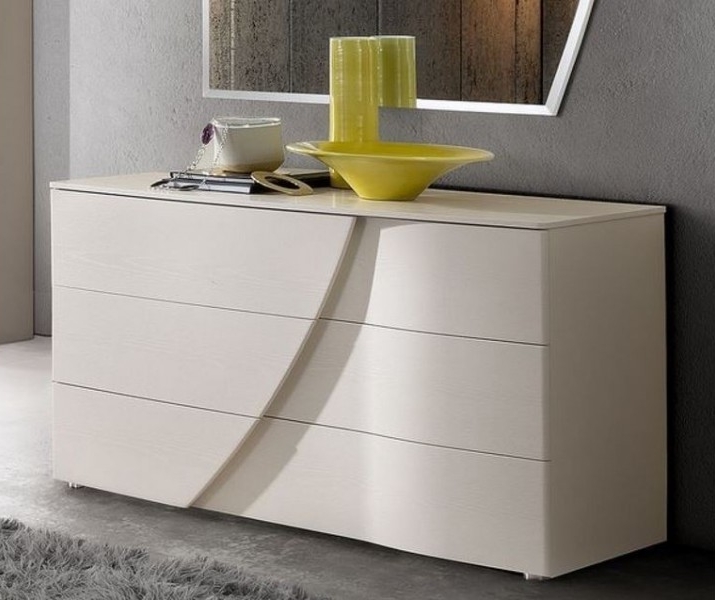 Camel Luna fehér kőris komód kétféle változatban nagy méretű fiókokkal. Letisztult modern stílusú és finom vonalakban pompázó elegáns megjelenésével hálóhelyiségek esztétikus felszereléseként és praktikus tárolóhelyként is kitűnő szolgálatot tesz.
