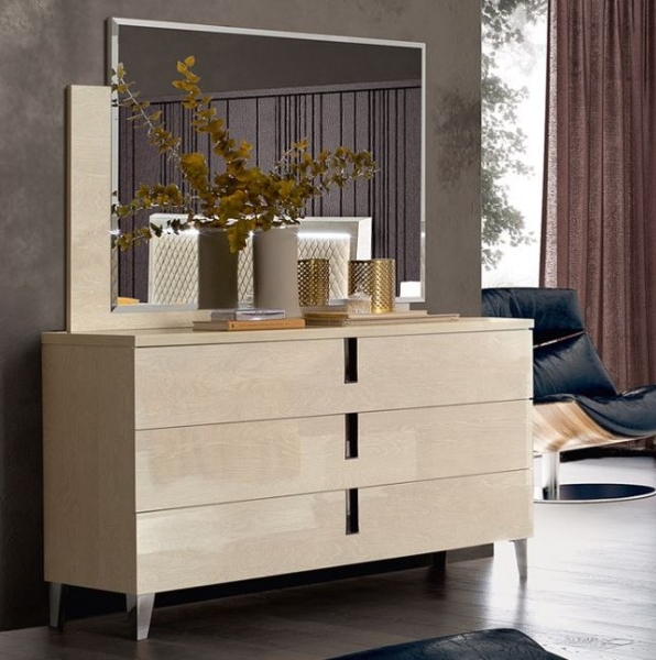 Camel Ambra nyírfa komód háromféle méretben és összeállításban. Kontrasztos színekben és részletekben pompázó elegáns megjelenésével hálóhelyiségek esztétikus felszereléseként és praktikus tárolóhelyként is kitűnő szolgálatot tesz.