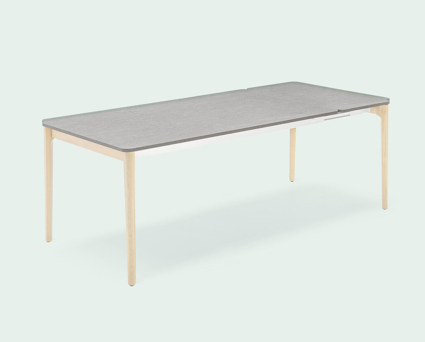 Con. Tabla kiterjeszthető olasz dizájn asztal bükkfa lábakkal és melamin fa asztallappal. Többféle színárnyalatban és mintázatban elérhető, amelyhez számos további stílusban hozzáillő termék is választható.