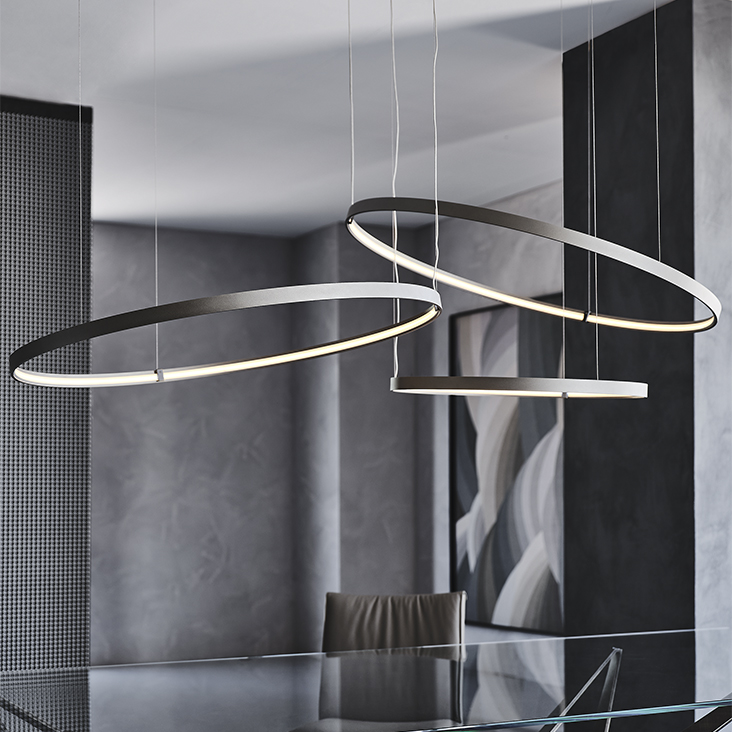 Cat. Magellano plafonra szerelhető lámpa többféle méretben és kialakításban. Elegáns olasz dizájn csillár, titán lakkozott acél struktúrával. Állítható erősségű LED világítással rendelkezik és opcionális távvezérlővel is kapható.
