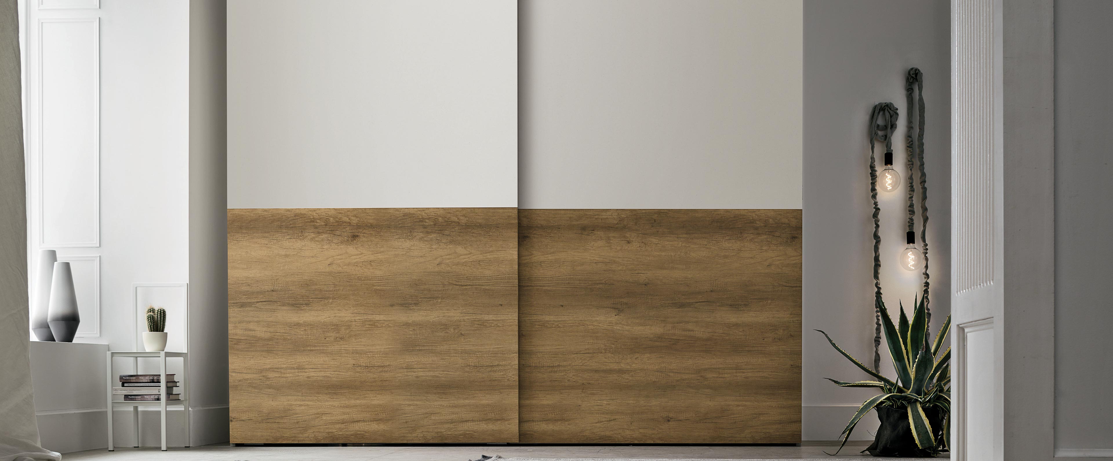 TMS. Double olasz dizájn gardrób többféle méretben és felülettípusban. A minőségi, letisztult formatervezésű kétajtós ruhásszekrény praktikus és elegáns darabja lehet hálóhelyiségének. Tolóajtókkal felszerelt modell, mely belül rendezett tárolórekeszeket és polcokat kínál ruhái számára.