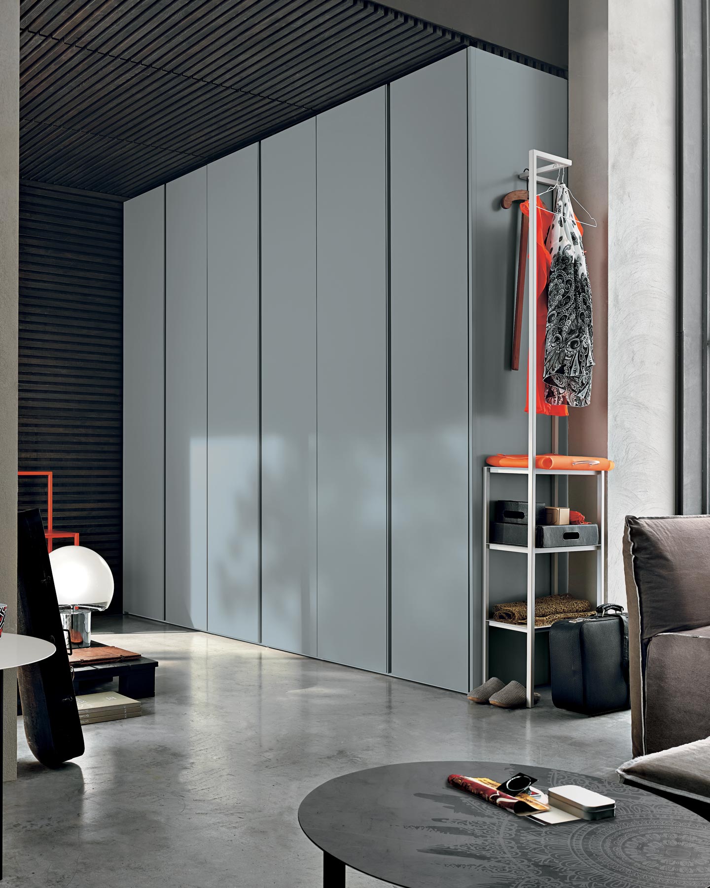 TMS. Gola olasz dizájn gardrób többféle méretben és felülettípusban. A minőségi, letisztult formatervezésű ruhásszekrény praktikus és elegáns darabja lehet hálóhelyiségének. Kifele nyíló ajtókkal felszerelt modell, mely belül rendezett tárolórekeszeket és polcokat kínál ruhái számára.