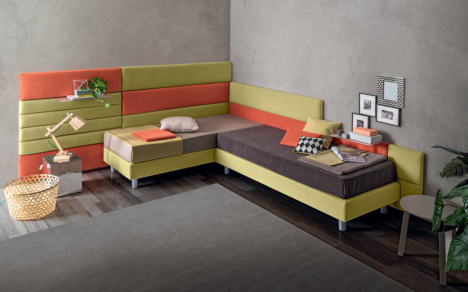 Felis Sommier Collection modern franciaágy. Letisztult  és elegáns olasz dizájn ágy, öltésekkel kiemelt profillal és puha falhoz illeszthető moduláris panelekkel. A panelek praktikus tartópolcokkal egészíthetők ki. Komfortos és esztétikus választás bármely hálóhelyiség számára.