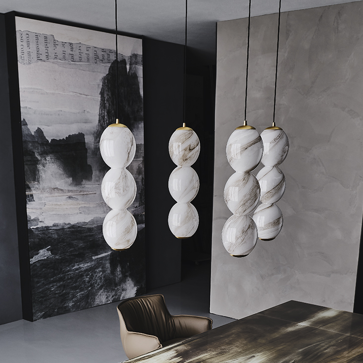 A Zanziball mennyezeti lámpa az olasz üvegmegmunkálás legkifinomultabb technikáinak megtestesítője, a Made in Italy hagyományainak lenyűgöző példája. Ez a modern és exkluzív lámpa három, egyetlen üvegpasztából mesterien formált gömbből áll.