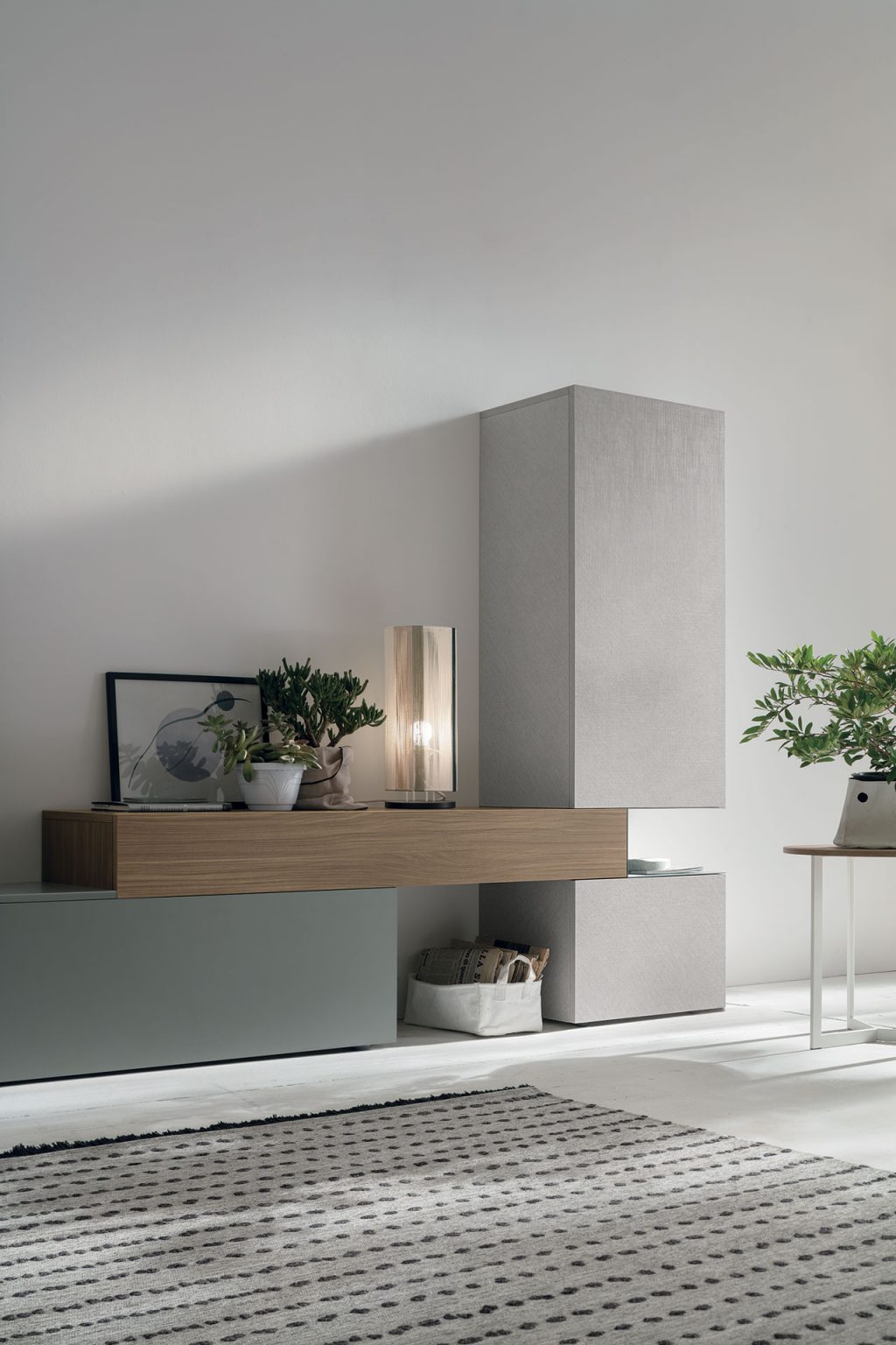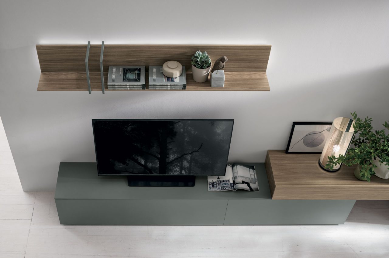 TMS. A114 elegáns olasz dizájn nappali összeállítás. Földön álló és falra akasztható egységekkel is rendelkezik ez a modern polcrendszer. Különböző textúrájú felületekkel kapható.