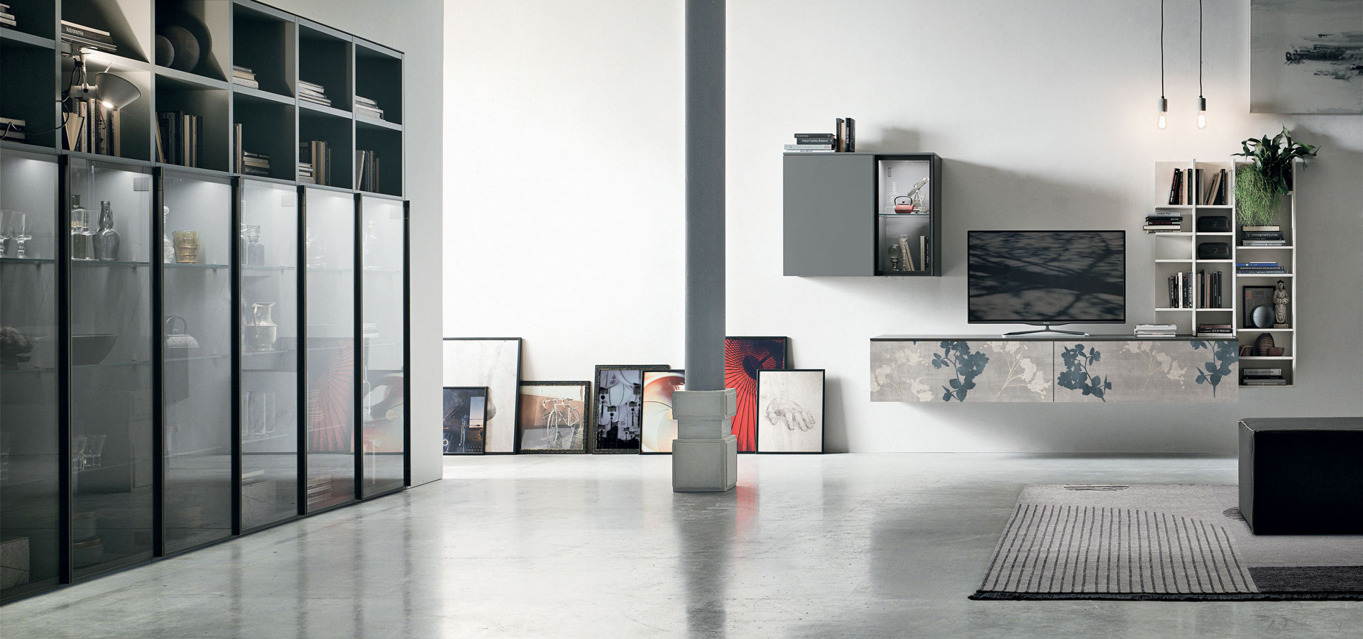 TMS. A139 elegáns olasz dizájn nappali összeállítás. Légies megjelenésű eredeti polcrendszer, mely magára vonja bármely helyiségben a tekintet. Nappalijában meghatározó stílusos darab válhat belőle.