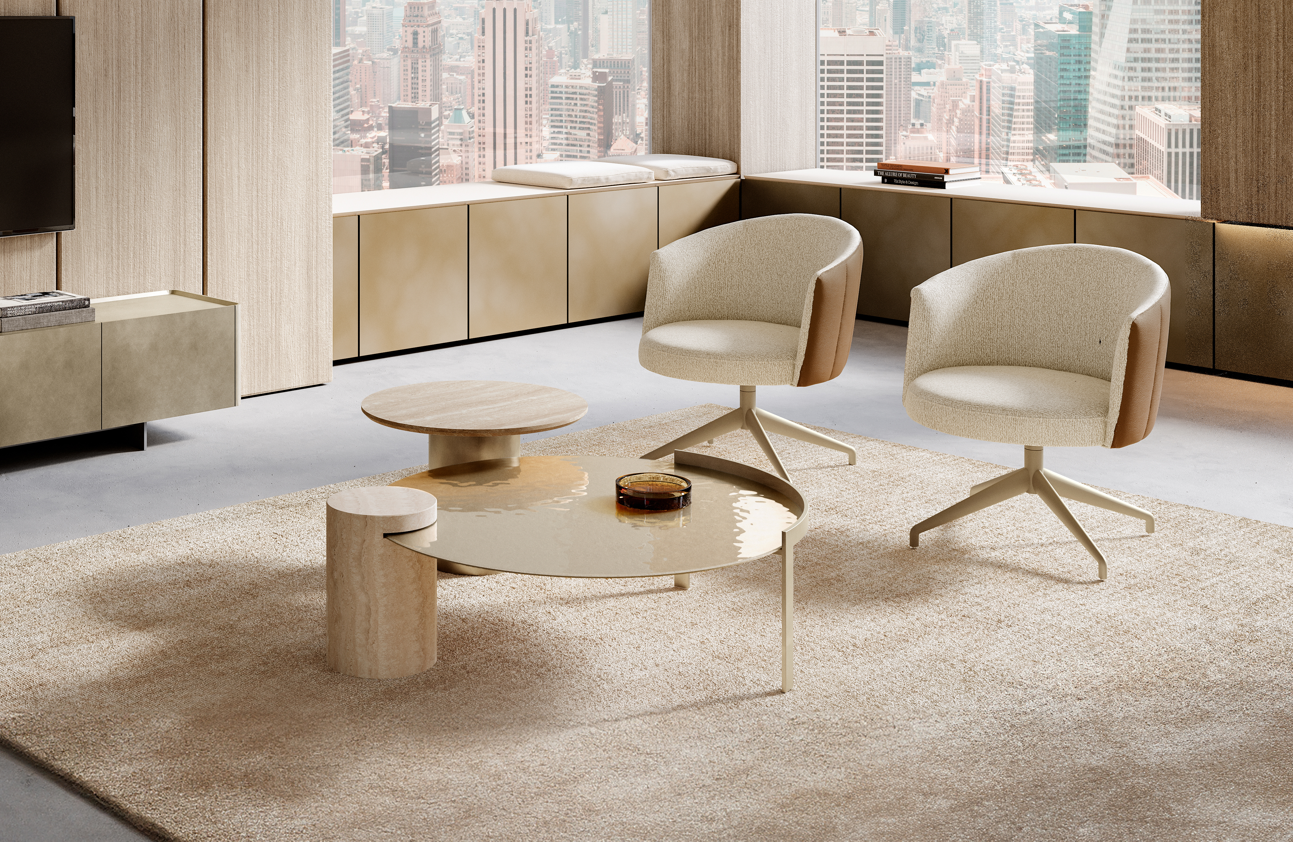 A Peo Low különböző üveglap- és márványfelületekkel érhető el, így könnyedén illeszthető különféle enteriőrökbe.