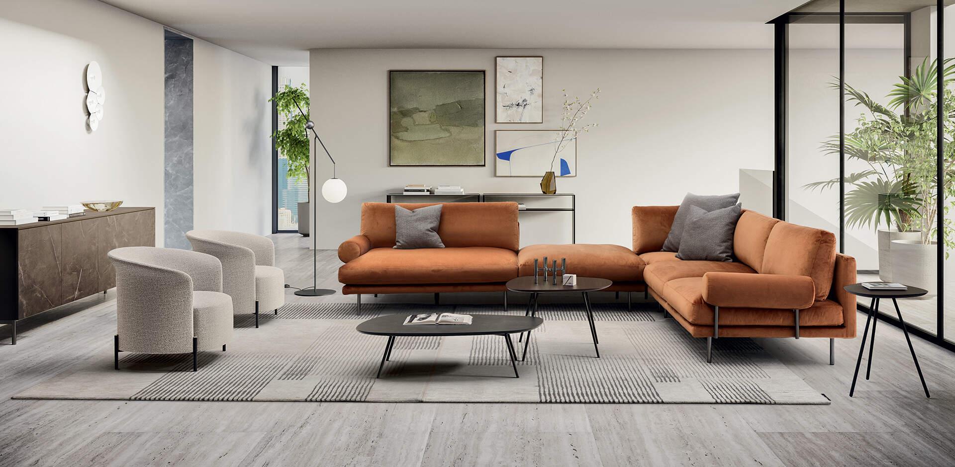 A mély ülőfelület és a puha párnázat a pihenés legmagasabb szintjét kínálja. Az ülőfelületek és háttámlák speciális töltete úgy lett kialakítva, hogy megfelelő egyensúlyt biztosítson a lágyság és a tartás között, így a kanapé hosszú órákon át kényelmes marad. A prémium minőségű szövet- és bőrkárpitok széles választéka lehetővé teszi, hogy mindenki megtalálja a számára legmegfelelőbb anyagot, legyen szó puha tapintású textilről, elegáns bőrről vagy tartós, könnyen tisztítható mikroszálas bevonatról.