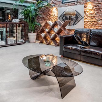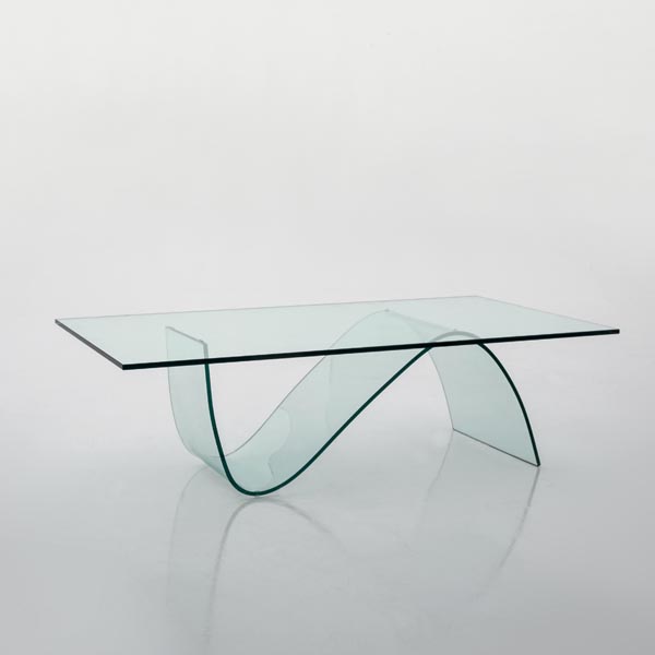 Tonin Casa Alissa dohányzóasztal. Olasz modern dizájn dohányzóasztal tisztán üvegből fejlett technikával művészi módon kialakított ívelt üveg lábbal. A modellhez számos további stílusban hozzáillő termék is választható.